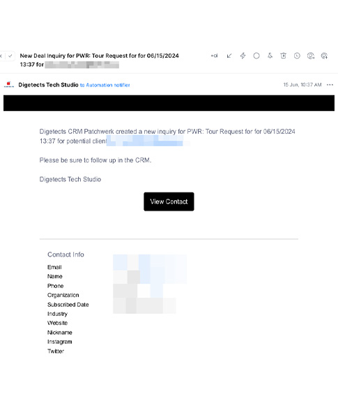 Future and current clients can get detailed information that used to require phone calls and physical communication between both parties—injecting Automation to bridge the gap, allowing clients to get their questions answered in near real-time, offering better and more concise service to the client to make informed decisions, and eliminating many of the back-and-forths before a final decision.